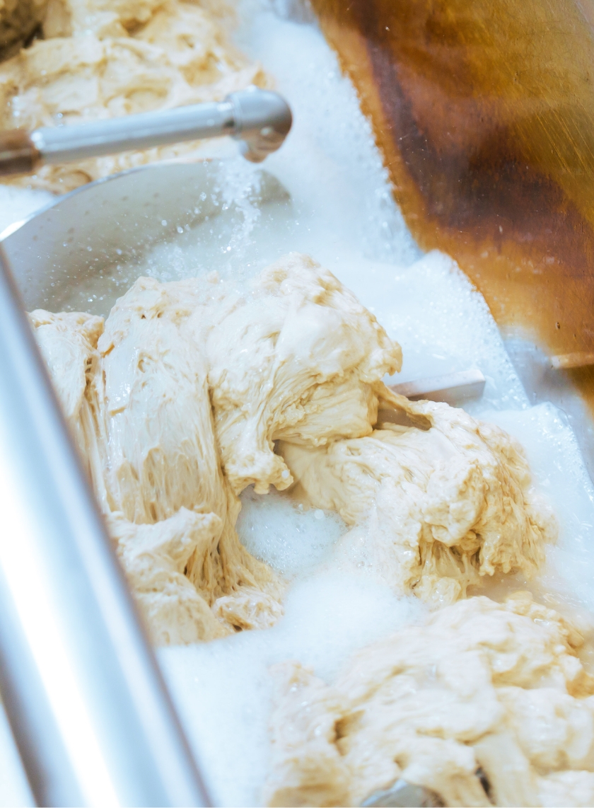 私たち長田産業は、1953年の創業以来、小麦でん粉・小麦たん白の製造・供給を通じて、食をはじめとするさまざまな産業に携わってきました。高品質な原料を安定して届けること。ニーズに応える研究開発を続けること。それは「小麦の可能性を追求する」という創業時から変わらない想いです。